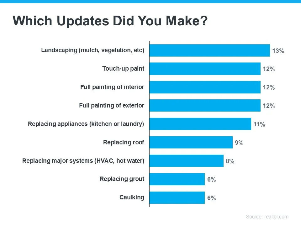 Start by prioritizing which updates you’ll make. In February, realtor.com asked more than 1,200 recent or potential home sellers what updates they ended up making to their house before listing it (see graph below):